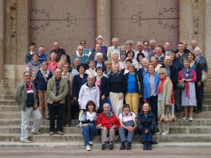 A convivial communal evening meal was enjoyed by all on Friday evening.  We certainly were being spoilt on the food and wine front and it helped our French speaking ability no end!  Another packed day on Saturday with a coach trip to Clamecy where we learnt the fascinating history of ‘les flotteurs’ – the latter-day logging industry sending gigantic rafts of logs from the Morvan forest down the river to fuel the fires of Paris. A five course meal and more local wine at lunchtime fortified us for an afternoon visit to the famous basilica at Vézelay on the pilgrim’s road to Compostella.