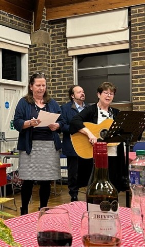 On Friday the 7th of March we held our AGM. Sadly Andrea resigned as chairperson. A significant event as she had been the first chairperson when the Friends of nevers had started official exchanges with people in Nevers in 1984. After a break she returned as chairperson in 2019. Since Covid, Andrea has helped us organise a Murder Mystery in a French Chateau. Our Jazz Cafe soiree, including a little skit with Rene. The fifthieth Anniversary which included a barn dance enjoyed by all and a visit to Oxford. Andrea told us about some of the highlights of her membership, and was given a small gift as a token of the Societies appreciation. After the AGM some of our members paid tribute to Andrea in a song. After the AGM we had a bring and share supper and a quiz.