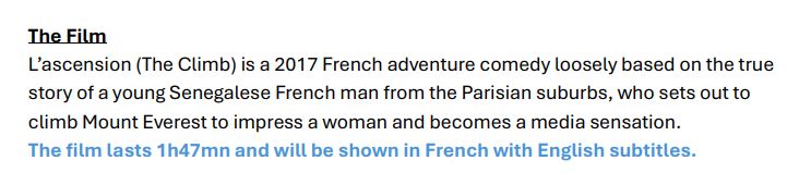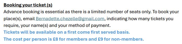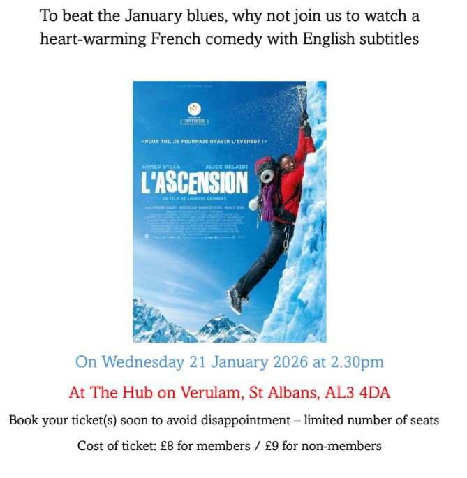 photo French Film Afternoon – 21 January 2026 January 5, 2026 friendsofnevers Leave a comment You will be emailed details of how to pay by cheque or by Bank transfer, when reserving your tickets. Share this:Like Loading... Related
